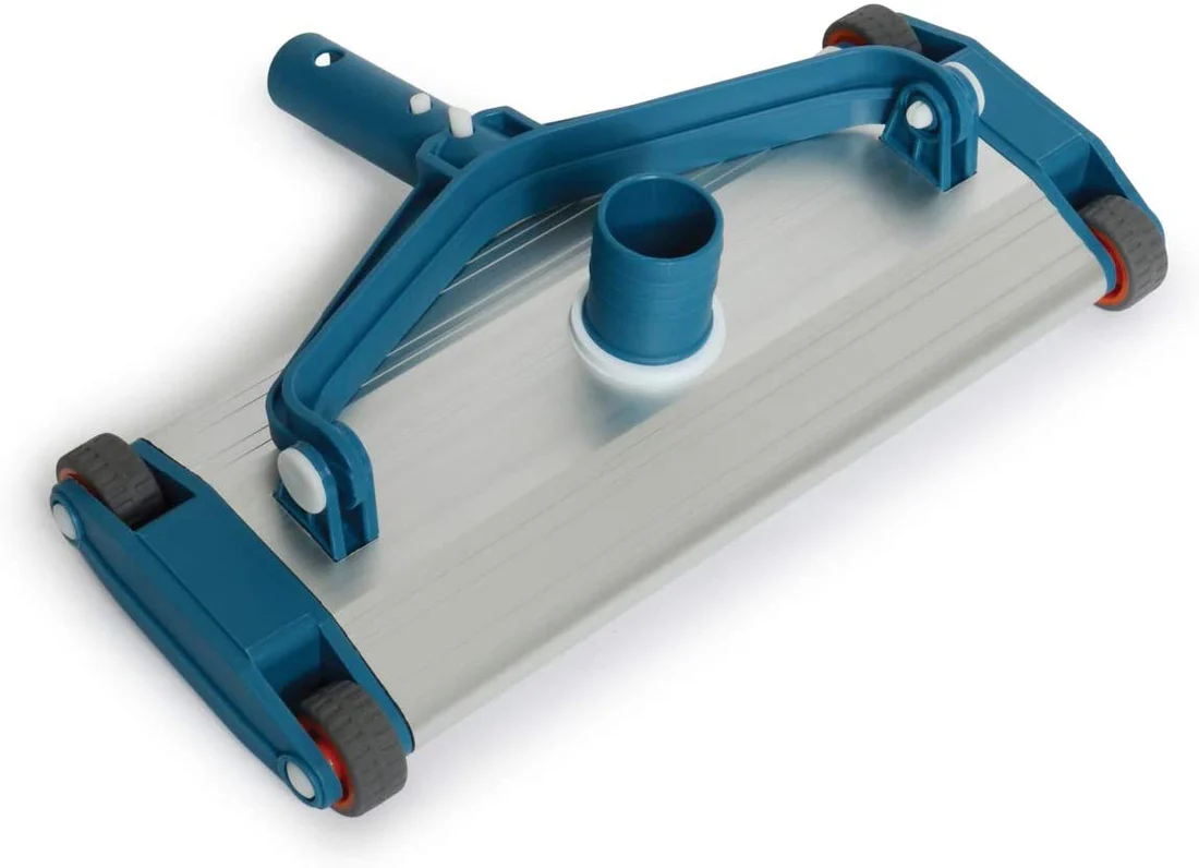– Aspirador manual construído em alumínio com rodas em plástico que permitem um fácil manuseamento na limpeza da piscina.